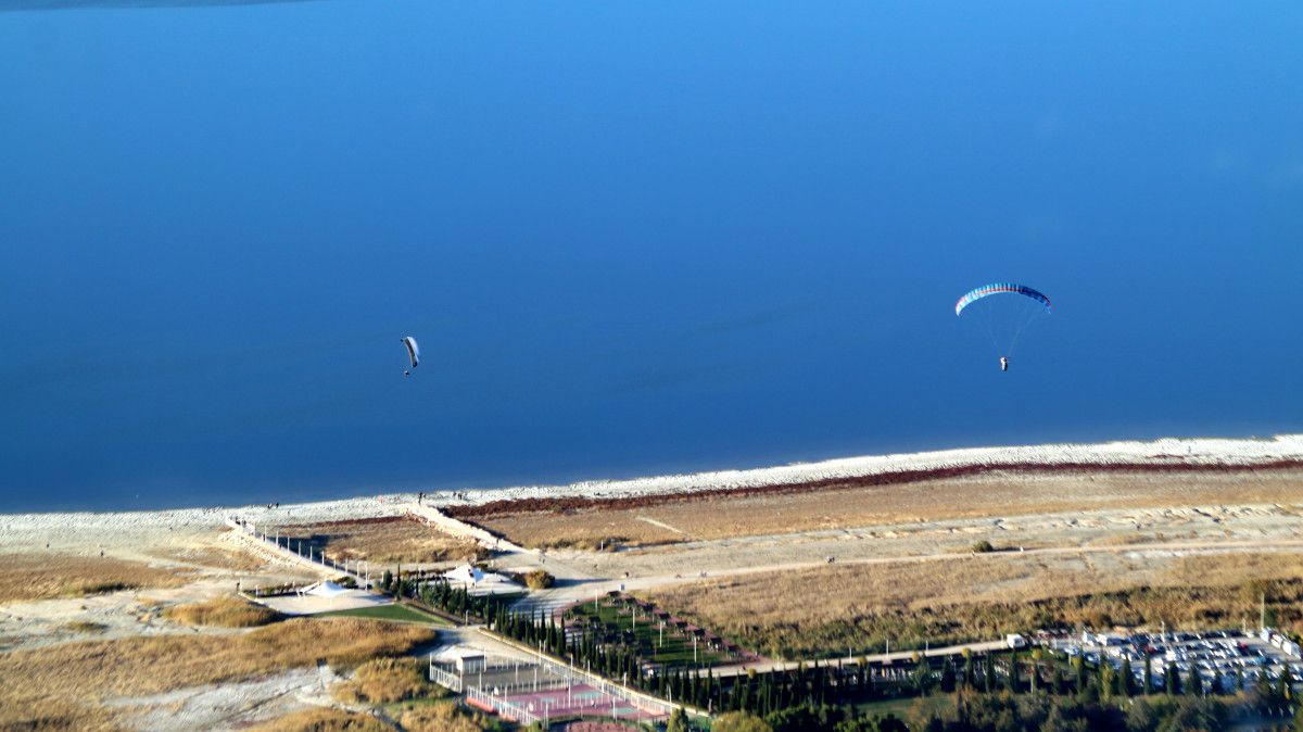 Kılıçaslan, uçuştan önce Avşar Tepe’den, uçuş sırasında paraşütten çektiği görüntülerle Türkiye’nin 7’nci büyük gölü olan Burdur Gölü’nün son durumunu gözler önüne serdi.
