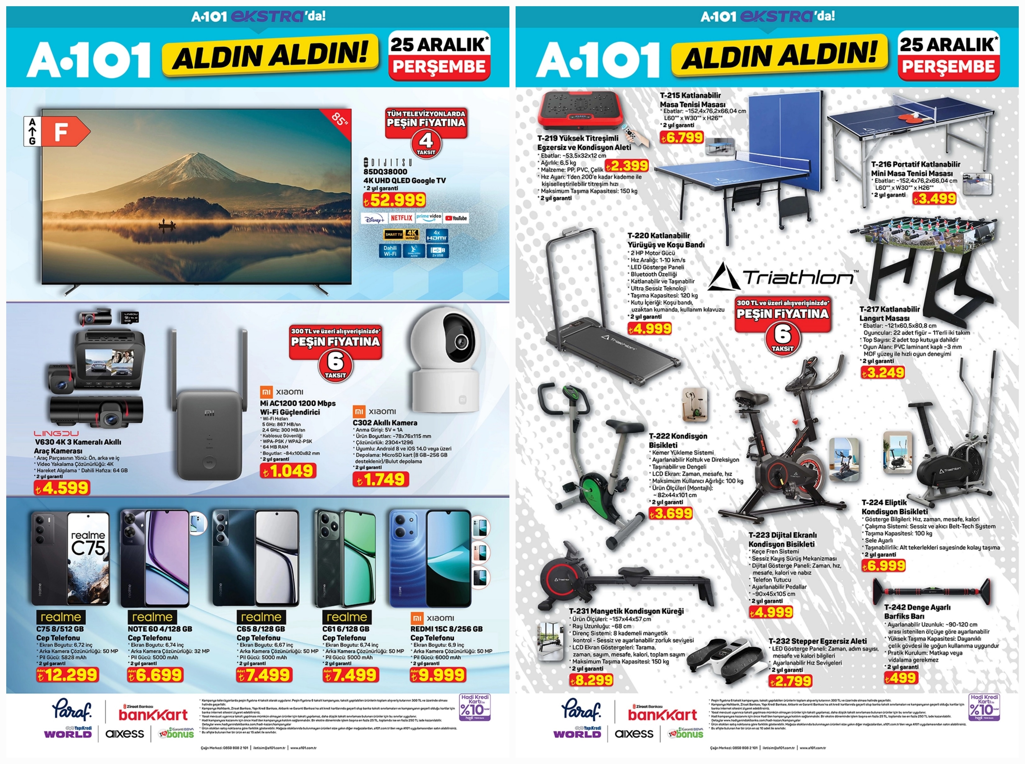A101 marketler zincirinin hafta içi Ekstra kataloğunda akıllı televizyonlardan akıllı telefonlara, araç içi kameralardan güvenlik kameralarına ve kablosuz yönlendiricilere kadar farklı ürünler bulmak mümkün olacak. 25 Aralık A101 Ekstra teknoloji ürünleri
