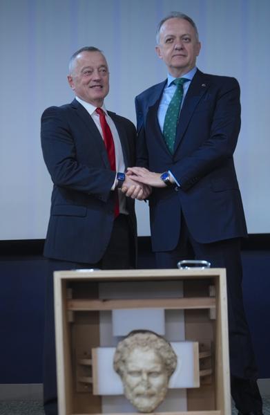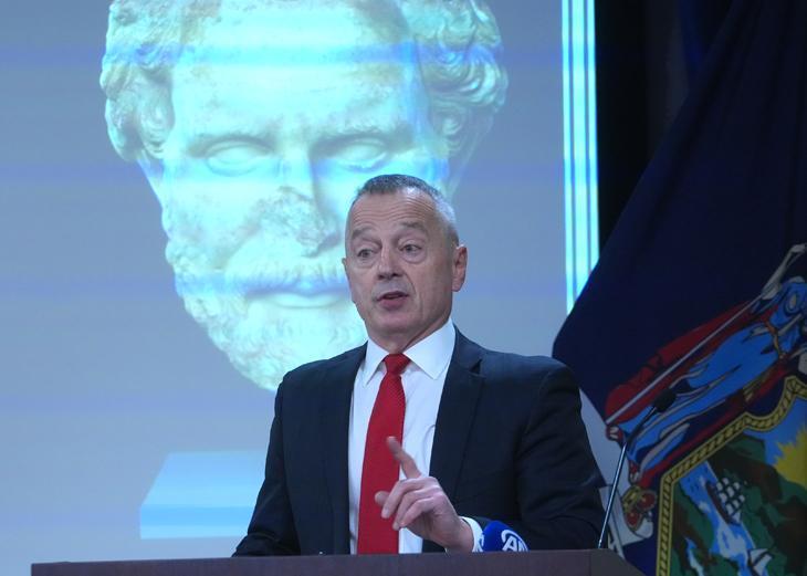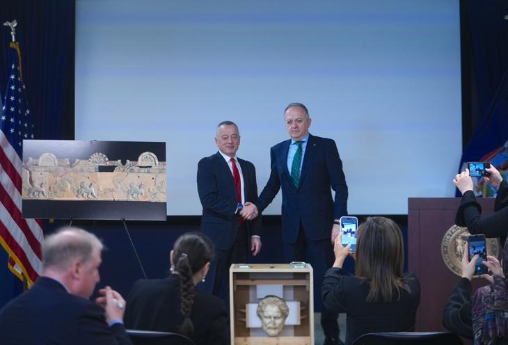 Törende Türkiye Cumhuriyeti Kültür ve Turizm Bakan Yardımcısı Gökhan Yazgı, Yardımcı Bölge Savcısı ve Kaçakçılıkla Mücadele Birimi Başkanı Matthew Bogdanos ile ABD İç Güvenlik Soruşturmaları (HSI) Yardımcı Özel Sorumlu Ajanı Tom Acocella konuşma yaptı.