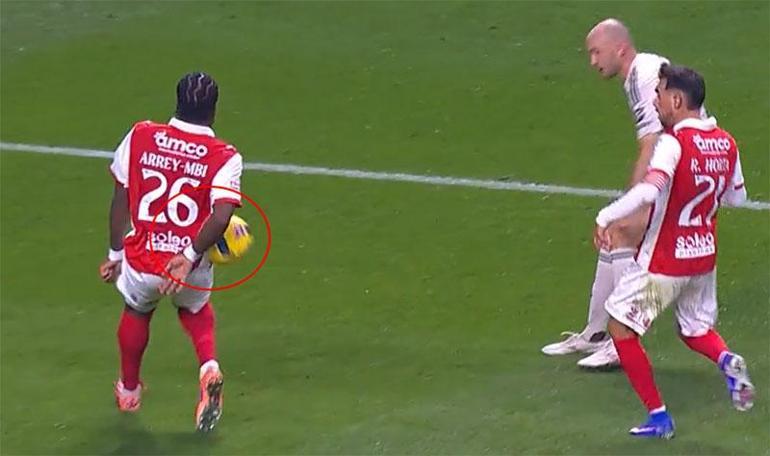 Aurnes’in ceza sahası sağ çaprazından içeriye ortasında top Arrey-Mbi’nin eline çarptı. Hakem yakın mesafede olayın gerçekleştiğini belirterek penaltı vermedi.