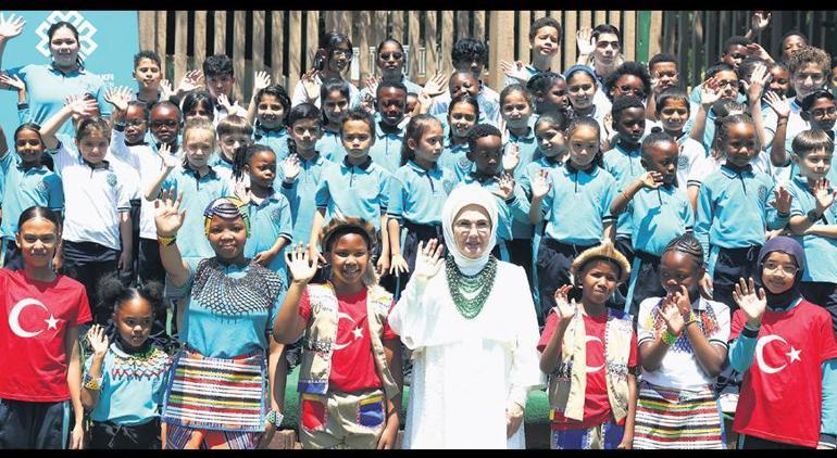 Cumhurbaşkanı Erdoğan’a eşlik eden Emine Erdoğan bazı ziyaretlerde bulundu. Türkiye Maarif Vakfı’nın Uluslararası Maarif Okulu’nu ziyaret eden Emine Erdoğan, okula gelişinde Maarif Vakfı Güney Afrika Ülke Temsilcisi Abdullah Cevizci ve öğretmenler tarafından karşılandı. “Geri Dönüşüm ve Çevre” temalı sergiyi gezen Erdoğan, buradaki çalışmalar hakkında öğrenci ve öğretmenlerden bilgi aldı. Emine Erdoğan, sosyal medya hesabından yaptığı paylaşımda, “Ülkemizin uluslararası eğitimde dünyaya açılan penceresi olan Maarif Okullarımızın, bu zengin coğrafyada toplumlar arası köprüleri güçlendirmeye devam etmesini diliyorum” dedi.