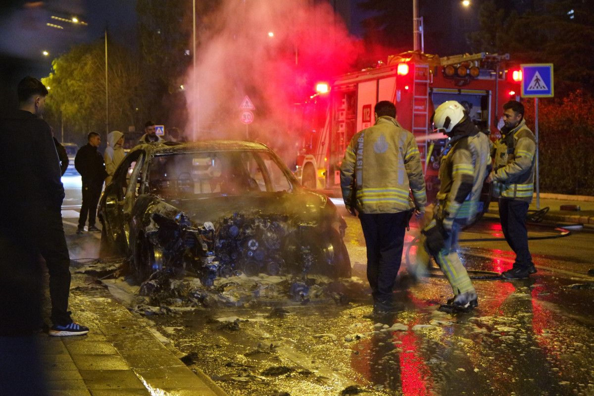 Yanan araç itfaiye ekiplerinin müdahalesiyle söndürüldü.