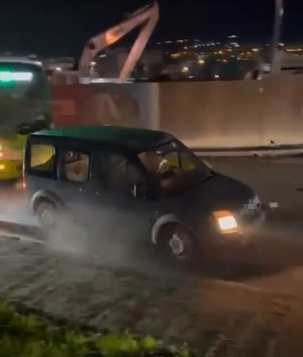 Cep telefonu kamerasına yansıyan görüntülerde taraflardan birinin hafif ticari araca sopa ile saldırdığı, öfkelenen hafif ticari araç sürücüsünün ise geri manevra yaparak arkasındaki yolcu otobüsü ve taksiye, ardından da otomobile çarptığı görüldü.