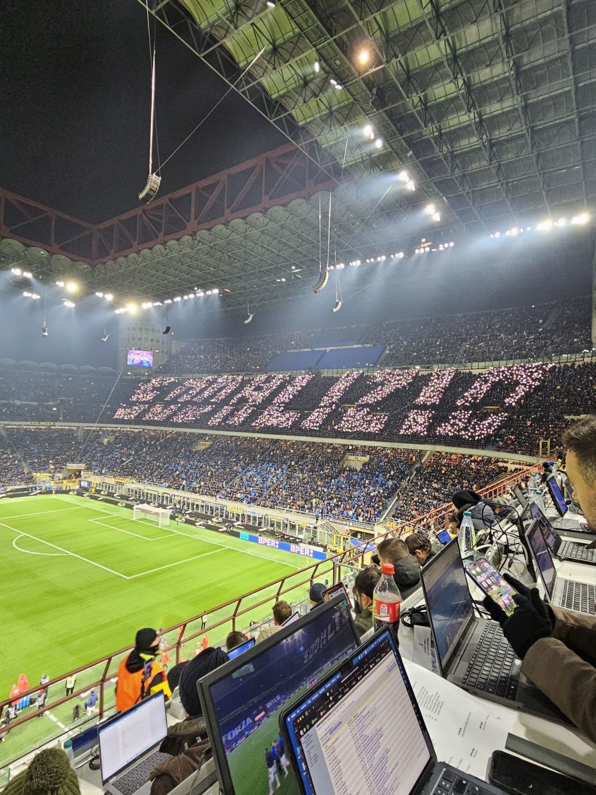 Bu nedenle Milan ultraları, telefon ışıklarını kullanarak aynı kelimeyi yeniden oluşturarak yasağı atlattı.