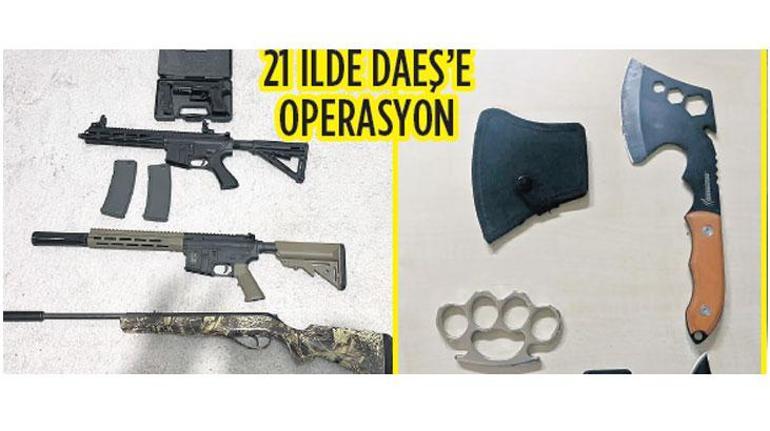 ■ İzmir’de MİT destekli operasyonda 40 şüpheli gözaltına alındı. Şüphelilerin adreslerinde döner bıçağı, hançer, bıçak, balta,, kılıç gibi aletler bulundu