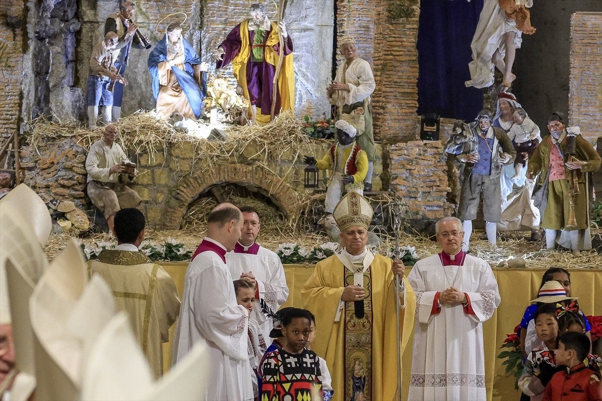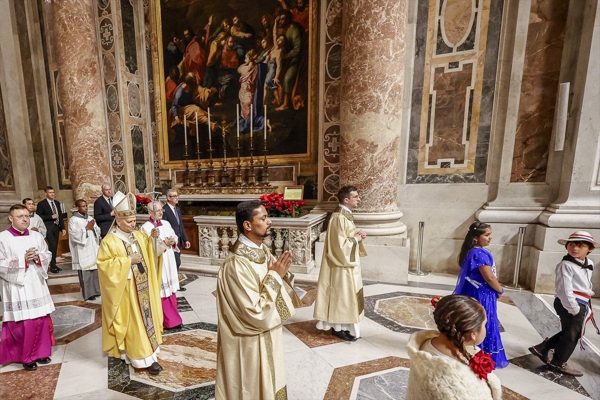 Vatikan’ın ünlü Aziz Petrus Bazilikası’ndaki Noel ayinine, Katolik Kilisesi’nden kardinaller, piskoposlar, rahipler ve Vatikan’a akredite kordiplomatik temsilciler ile çok sayıda davetli katıldı.