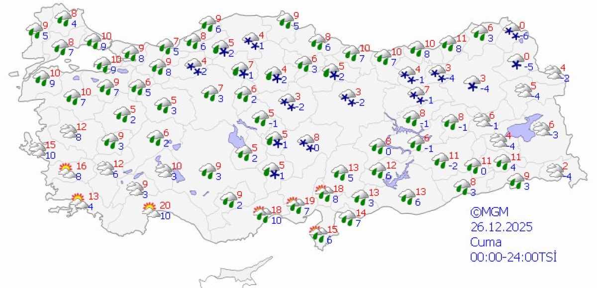 Meteoroloji Genel Müdürlüğü’nün (MGM) son verilerine göre, Türkiye hafta sonu ve yılbaşı yaklaşırken soğuk ve yağışlı bir havanın etkisi altına girecek.