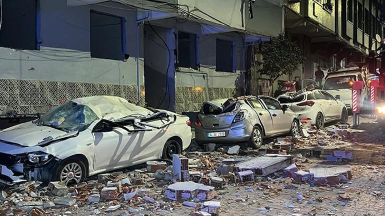 Yer: Zeytinburnu! Binadan kopan parçalar arabaların üzerine düştü, sokağı savaş alanına çevirdi